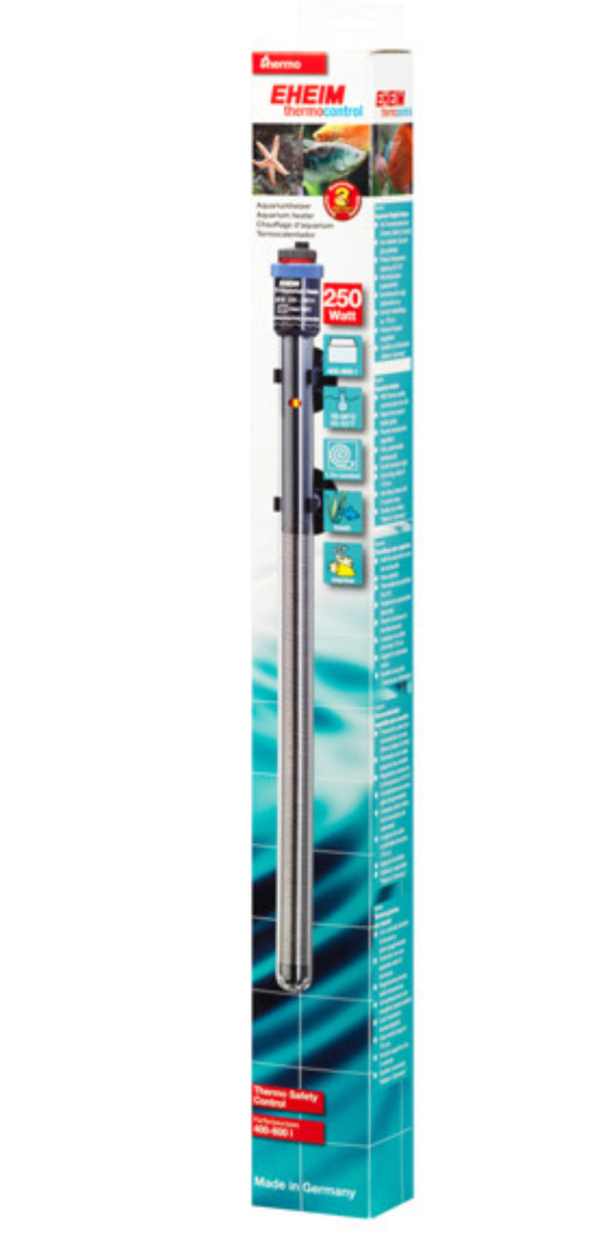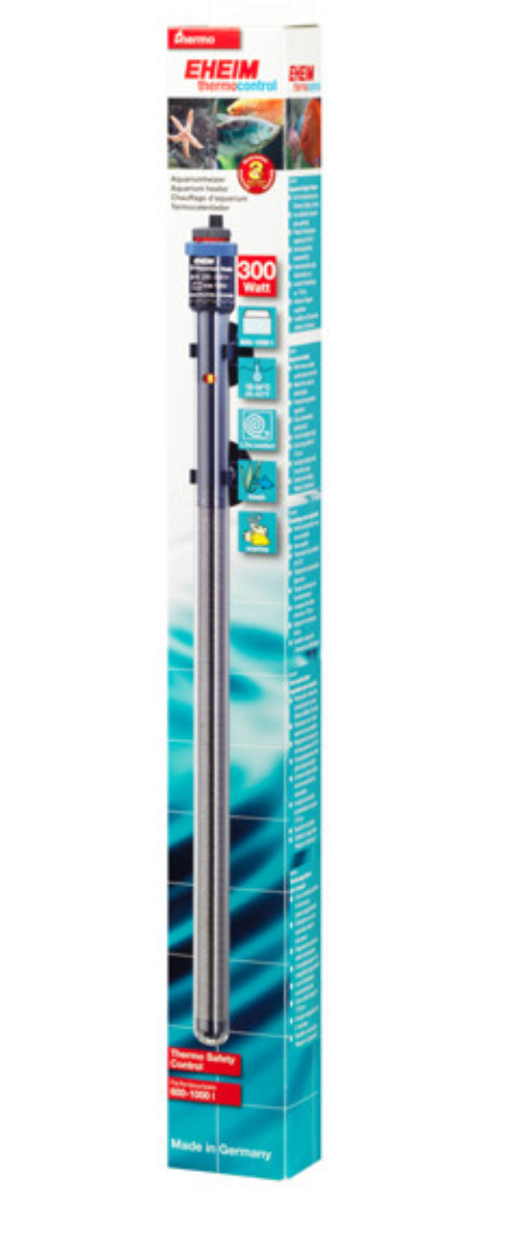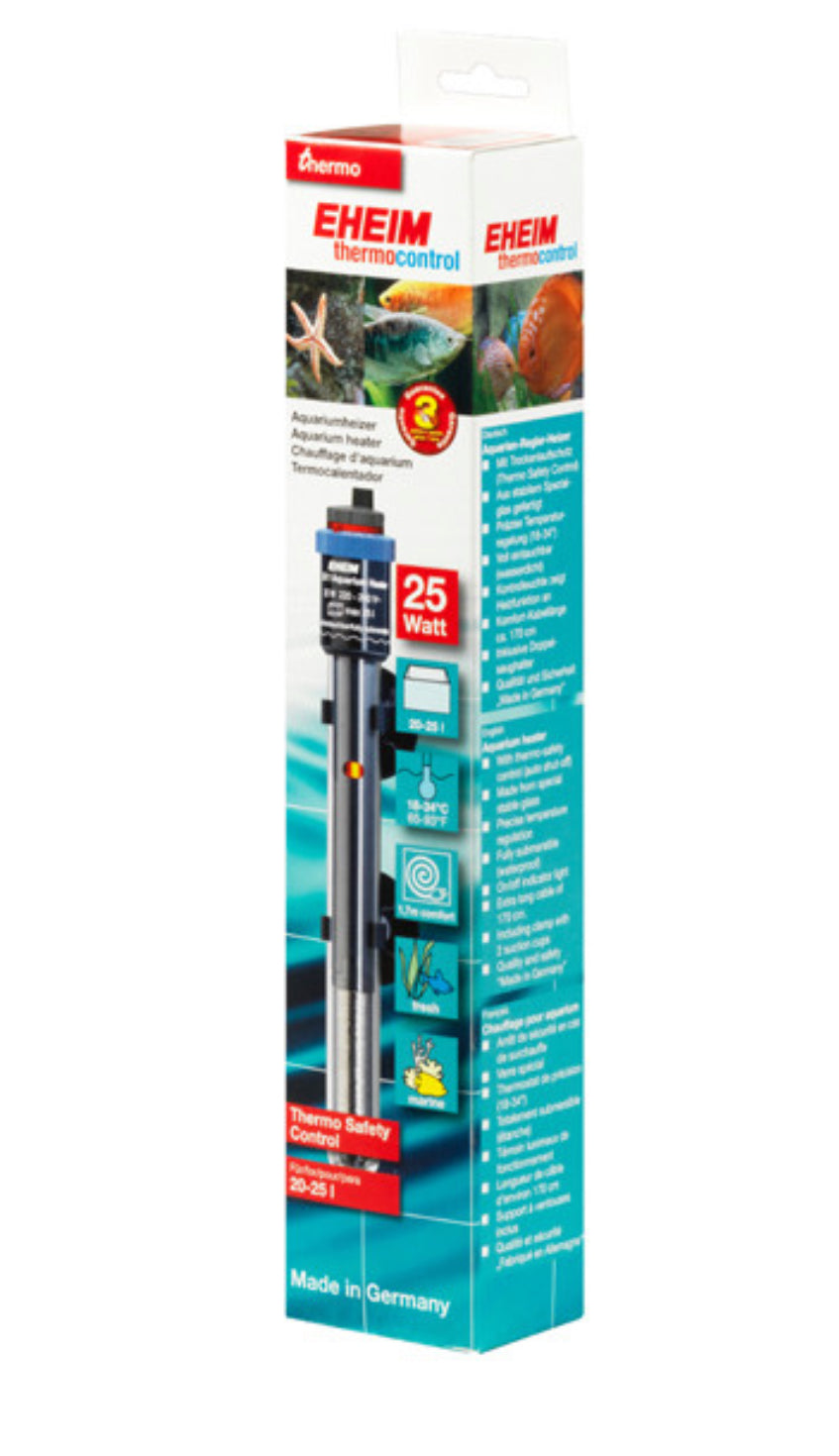 With the EHEIM precision heater your fish receive exactly the right temperature – in any aquarium.Obvious ideas often are the best ones. For example, the aquarium heat-er as a rod. The heating rod is simply hung in the water and heats it. It is true that the principle is still the same as decades ago. But a lot has changed in the meantime. And today the EHEIM adjustable heater is an ultra-modern electronic thermal device with the best available tech-nology. A jacket made from special laboratory glass increases the heating surface, serves as a heat shield and ensures optimum even heat emission. And no matter if you want to heat a 20 or a 1000 litre aquarium – you have 9 sizes to choose from. Benefits of the EHEIM thermostatic heaters Precis