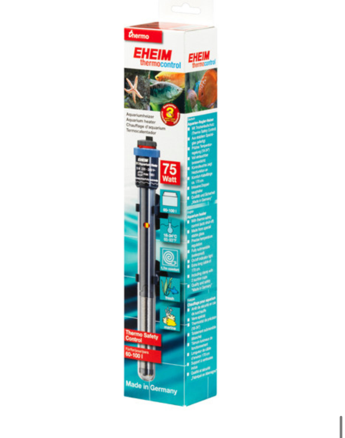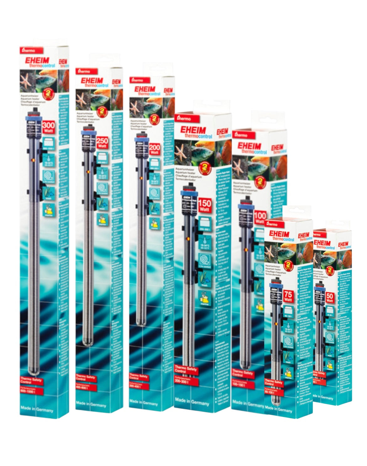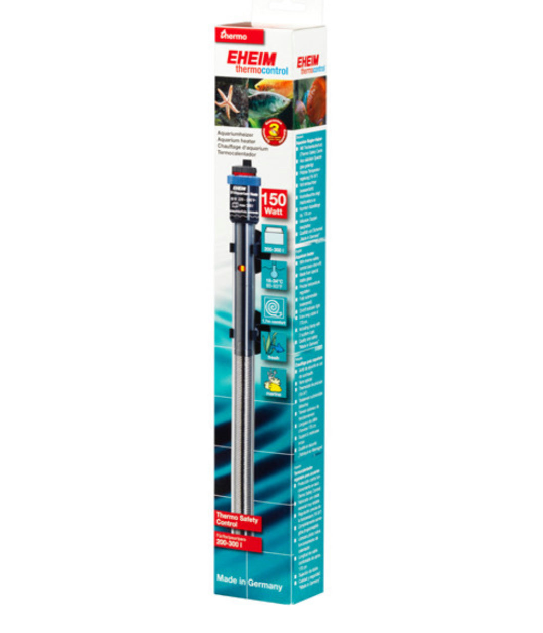 With the EHEIM precision heater your fish receive exactly the right temperature – in any aquarium.Obvious ideas often are the best ones. For example, the aquarium heat-er as a rod. The heating rod is simply hung in the water and heats it. It is true that the principle is still the same as decades ago. But a lot has changed in the meantime. And today the EHEIM adjustable heater is an ultra-modern electronic thermal device with the best available tech-nology. A jacket made from special laboratory glass increases the heating surface, serves as a heat shield and ensures optimum even heat emission. And no matter if you want to heat a 20 or a 1000 litre aquarium – you have 9 sizes to choose from. Benefits of the EHEIM thermostatic heaters Precis
