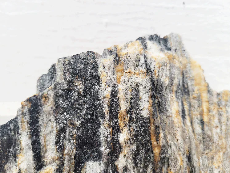 Grey Fossil Wood is a unique metallic grey stone that is characterized by its monolithic forms and sophisticated rounded shapes. It is often mistaken for Fossil Wood due to its similar shape and texture, but it is actually a highly metamorphic rock that contains bands, layers, or lenses of blocky crystals such as feldspar, alternated with bands of a flat, plate-like mineral such as mica. Gneiss represents some of the most advanced stages of metamorphosis with some of the most intense temperatures and pressures.